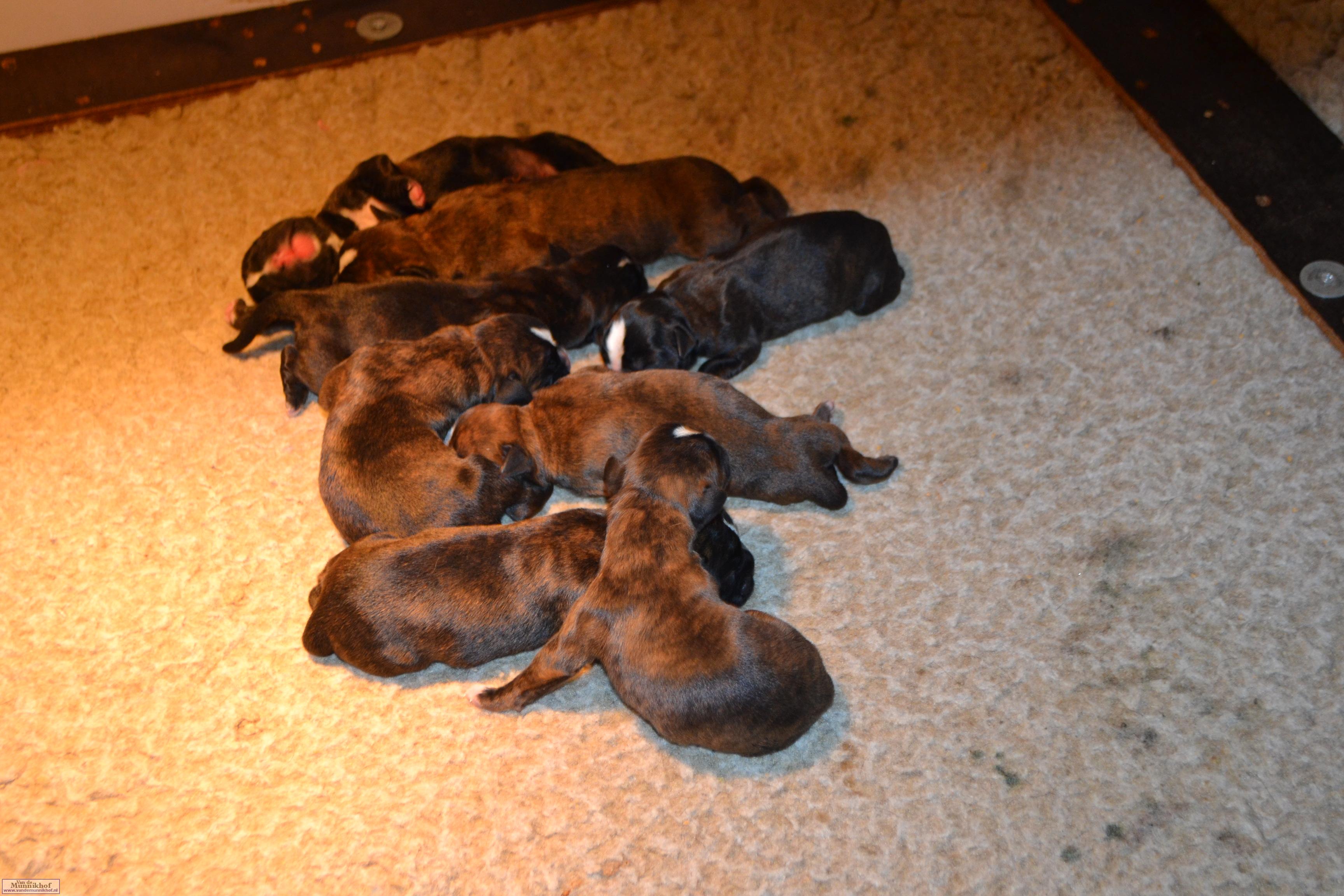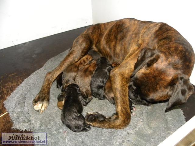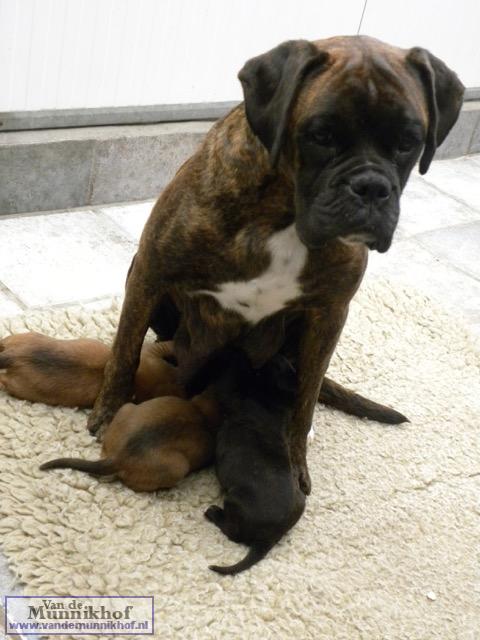 Vader: Brindle-Milton v.d. Munnikhof - Moeder: Charming Mirthe v.d. Munnikhof